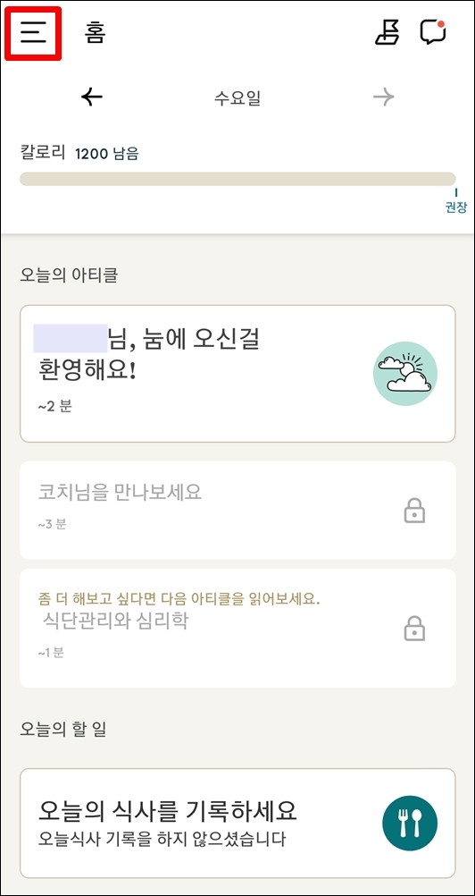 1. 앱 왼쪽 상단 ☰ 메뉴 버튼 누르기