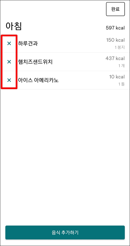 • 기록한 음식을 수정/삭제할 수 있나요?