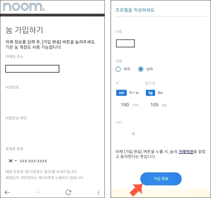 가입 완료 후 ‘다운로드’ 버튼을 클릭하여 앱스토어/플레이스토어로 접속 후 눔 앱을 설치해주세요.